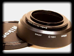 ニコンHN-3・・・やはり見た目も実用にもフードが欲しい。径は43mm。これがまた無い。仕方がないのでデジタルカメラ用にケンコーから出ているステップアップリングを介してニコンのHN-3を付けてみた。ケラレそうな気もしたが試写すると大丈夫みたいである。個人的には望遠系のレンズより広角系のレンズの方がフードは必需品と思っているのだが、よく長い望遠レンズには強大なフードが着いているのは私の考えが間違っているのだろうか?